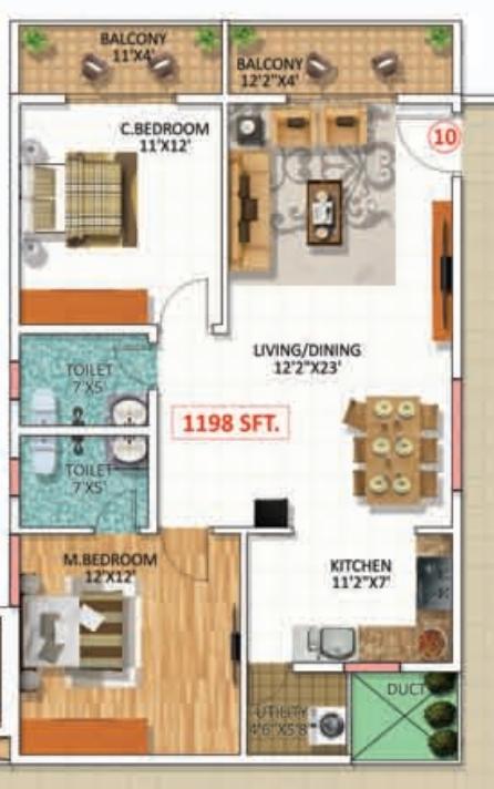 - Area:1,200 SQFT